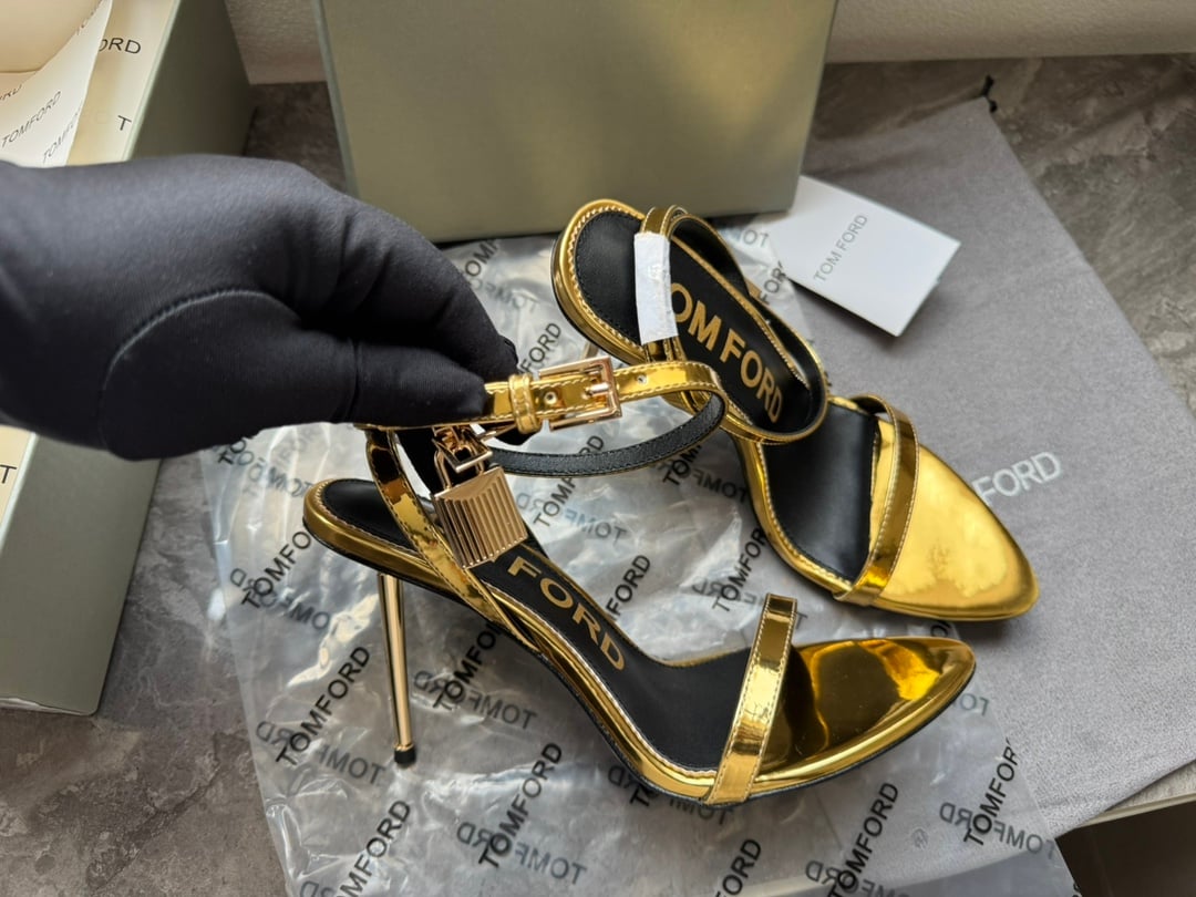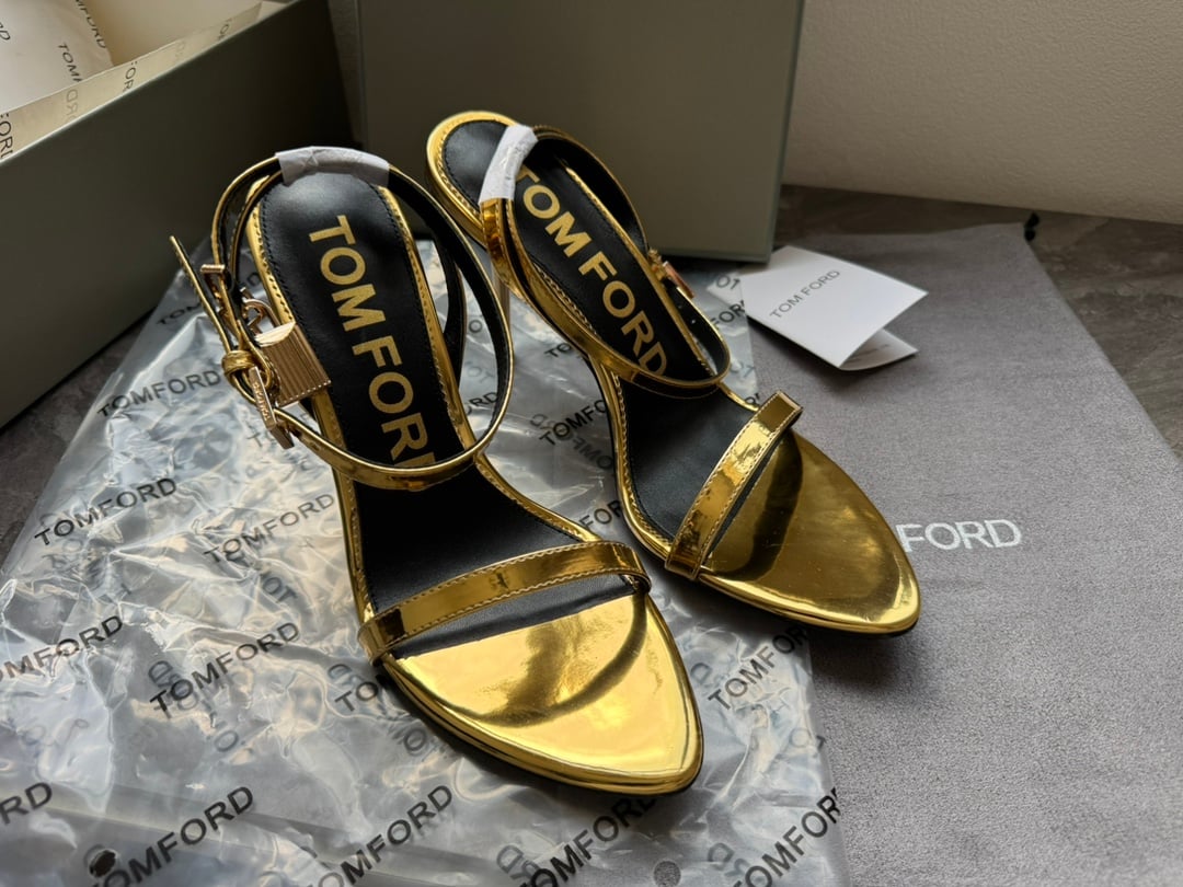 TOM FORD Lock Metallic Stilleto Sandals (Gold)